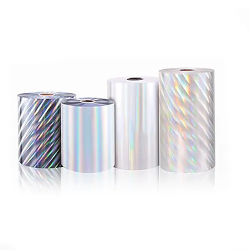 Is iad na scannáin holagrafacha is coitianta a úsáidtear ná PET, BOPP, Ag brath ar d'iarratais, is féidir leat an scannán holagrafach is fearr a oireann do do chuid riachtanas a roghnú.